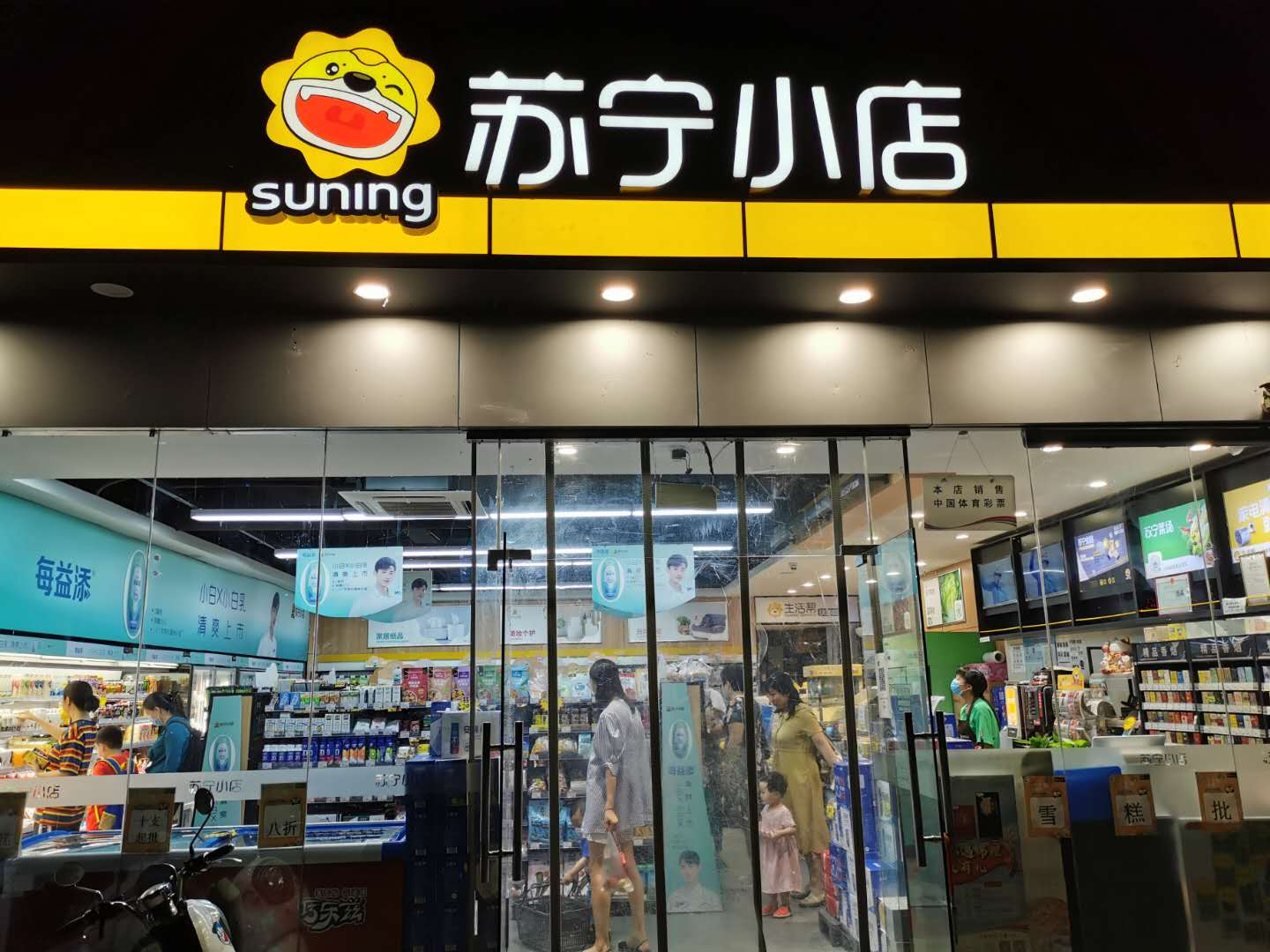 夜晚,苏宁小店依旧红火