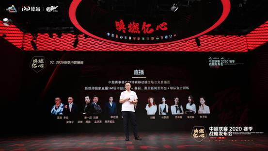 7月21日,“中超联赛2020赛季战略发布会”在北京召开,PP体育现场揭开新赛季中超联赛“三板斧”:内容更立体、球迷更融入、合作更开放。即以直播升级、一线访谈、原创节目为代表的内容精耕,以云主场、云观赛、“全场景看中超”为代表的形式创新,以及以联手新华社民族品牌工程与快手开启中超新锐解说征集、与新浪微博展开展略合作、与太合音乐破圈跨界合作为代表的生态开放。