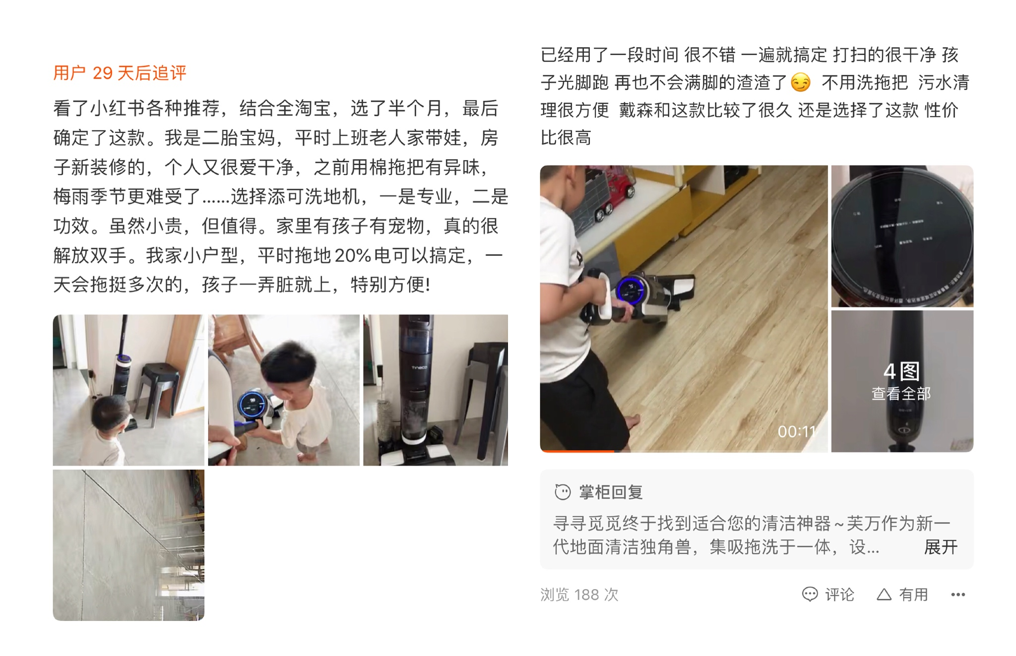 618之后添可智能洗地机强势占据全网洗地机品类首位,成为超A智能潮品。使用1个月,盘点添可智能洗地机的评论,发现好产品备受用户喜爱,获得高口碑。“孩子光脚跑,再也不会满脚渣渣了”、“作为双职工家庭,家务最令人头疼…这个洗拖地机帮我解决了家里的矛盾”、“家里有孩子有宠物,真的很解放双手。”……添可乘风破浪广受好评,源自超强的产品力,以智能科技改变中国家庭地面清洁观。“爱干净,就洗地;要洗地,选添可。”