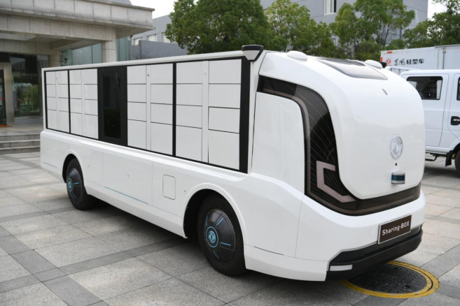 在2019年9月东风汽车股份“品牌焕新”战略发布会上,隆重推出无人驾驶智能对点载运平台Sharing Box。SharingBox采用智能感知、智能互联、智能决策和V2X等智能化前沿技术,真正实现特定场景下基于高精地图的L4级无人驾驶,结合场景应用,提供智慧物流合作解决方案。Sharing Box作为一个可变换的平台,可以百变为快递收发盒子、商铺售卖盒子、环卫清扫盒子、图书阅览盒子、以及充电盒子等各种形态。