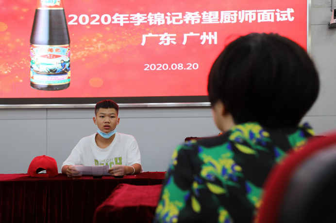 李锦记希望厨师粤菜师傅班面试现场,学生正在进行面试。