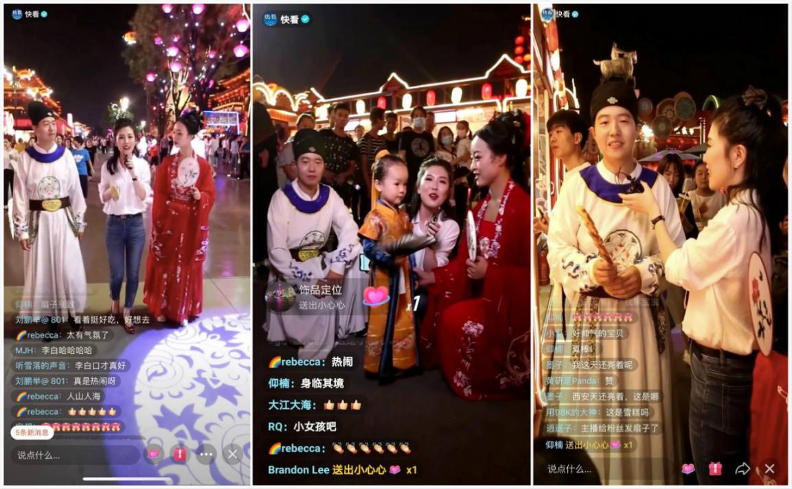 8月29日19点,新华社“快看”抖音直播间“百姓味道 周末探店”节目来到古城西安,带领大家夜游大唐不夜城步行街,体味盛唐的文化风韵,感受西安“夜经济”的创意与活力。在一个半小时的直播中,美景与美食交替频现,广大网友通过留言助力、比心点赞,加入这场美食与文化、传统与时尚的探访之旅中。