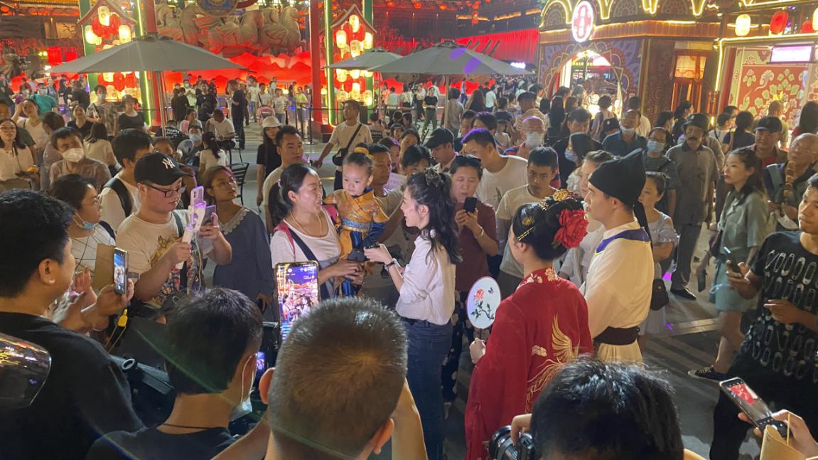 西安大唐不夜城步行街位于大雁塔脚下,北起大雁塔北广场,南至唐城墙遗址公园,全长2100米,是首批“全国示范步行街”之一,也是亚洲最大的雕塑景观街区。近年来,随着西安市“夜经济”、“中国年·看西安”等旅游IP纵深推进,步行街突出历史文化特色,以唐代元素为主线,创新打造文化浓厚的现代时尚街区,已成为西安“夜游经济”主阵地和潮流时尚新坐标。