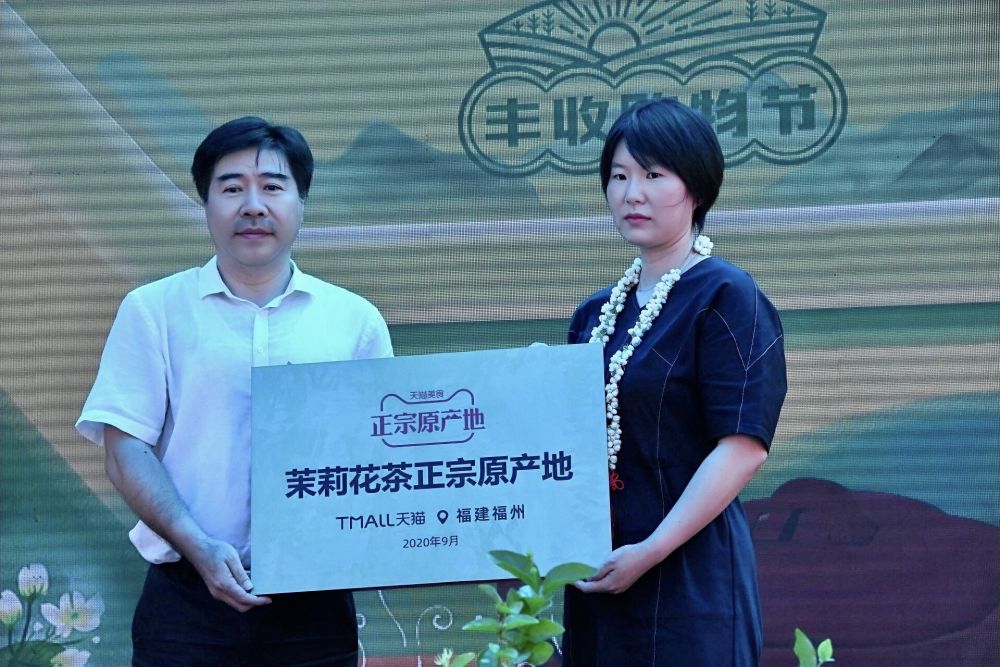 丰收节活动现场,伴随《好一朵茉莉花》的歌舞,春光村被授予福州茉莉花茶天猫原产地牌匾。福州茉莉花茶迎来了电商时代。