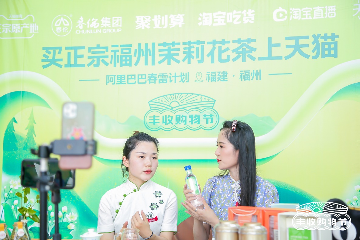 为了将福州茉莉花茶特性与历史立体化呈现给消费者。天猫协同春伦集团共同开启福州茉莉花茶溯源直播活动,展示福州当地茶园风光,并邀请农人、茶艺师、专家多角度展示福州茉莉花茶产品。