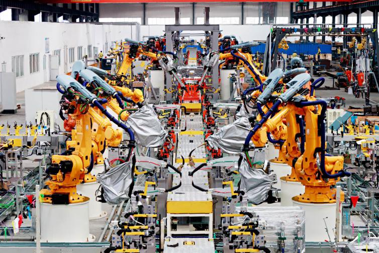 图为埃夫特生产的工业机器人生产线