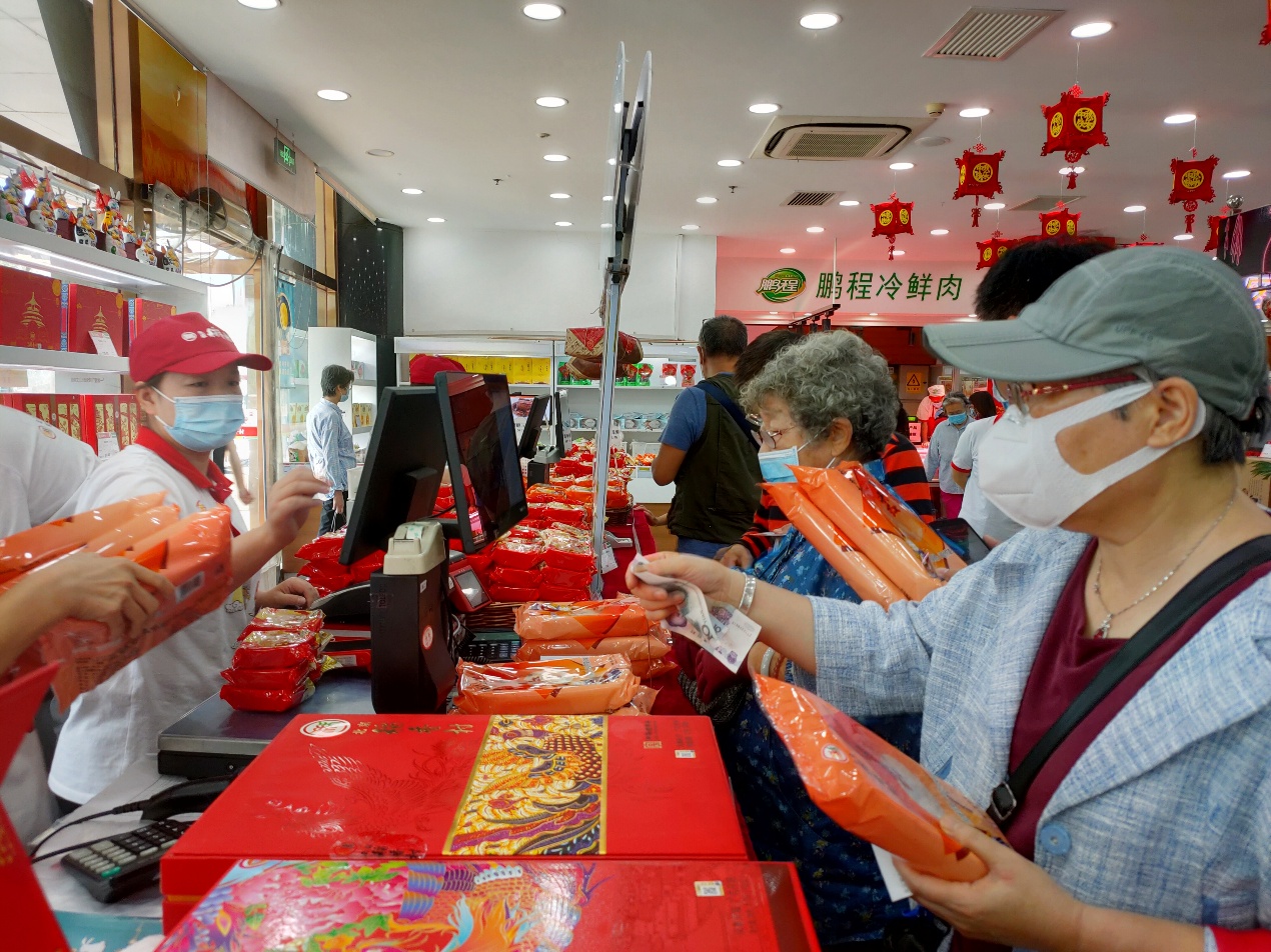 “从目前的销售情况来看,消费市场复苏持续向好,食品厂这几天多班组,加班加点生产月饼,全力以赴保障中秋市场供应。”北京稻香村负责人介绍道。