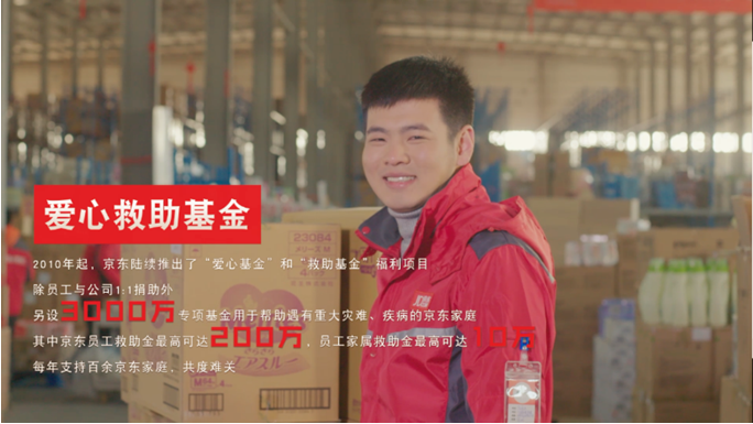 从2010年起,京东就建立了“爱心救助基金”福利项目,3000万基金用于解员工及直系亲属燃眉之急,每年都帮助百余家庭度过难关。