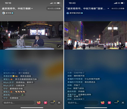 炫彩的灯光、动听的音乐、5G网络全覆盖、街区互动新体验、消费体验新热度、商业活力新提升……改造提升后的沈阳中街步行街9月25日晚8时正式“鸣锣开市”。当晚,新华社“新华网”抖音直播间、“新华每日电讯”抖音直播间来到沈阳中街步行街,体验“盛京中街 繁华再现”主题的“商业+文化+旅游”之旅。直播期间,共计70多万人次涌入直播间,与主持人和嘉宾线上活动,共同领略“新中街”的风采,见证开街盛况。