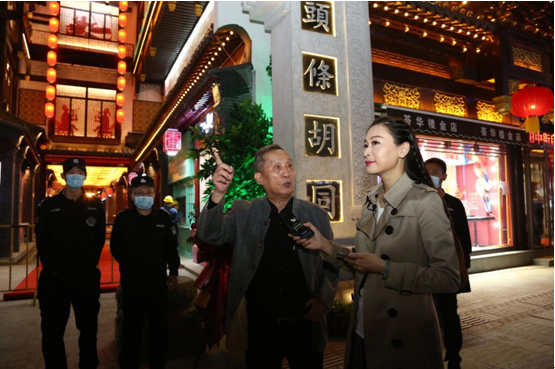 直播当天,CNC主持人张名与沈阳文化学者冯述、中街商会会长李斌等嘉宾在升级改造后的中街步行街扫街探店。在荟华楼金店西侧的“头条胡同”前,70岁高龄的冯述老先生讲述中街的历史由来,“中街的形成与故宫密切相关。皇太极修故宫的时候修建了四平街,主要目的在于‘前朝后市’。故宫及周边是皇帝及其大臣等办公和生活的地方,八旗贵族也聚居于此。但是一切生活日用品需要一个市场来支撑,于是就按照传统祖制,在故宫的后边兴建了中街,作为贵族购买物品的场所。”随后,主持人张名来到中街冰点城、亨得利钟表眼镜店、天益堂大药房等百年老店探店。改造后的中街冰点城变成了一个“博物馆”,顾客在店里享用美味冰点的同时,还可以了解中街品牌的创建历史以及中街大果的制作方法;在亨得利钟表眼镜店、天益堂大药房,依然可以看到传统的工艺在时尚街区散发出的魅力。