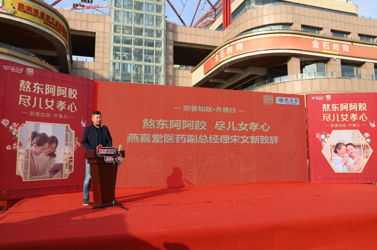 山东燕喜堂医药连锁有限公司副总经理宋文新说:“东阿阿胶素有‘滋补国宝’的美誉。日常生活中适量服用东阿阿胶,能增强免疫力、缓解疲劳,对身体有很大的好处,是中老年人养生保健、益寿延年之佳品。今日山东燕喜堂拿出巨大优惠为亲情让利,倡导东阿阿胶送老人,送出健康与敬意。”
