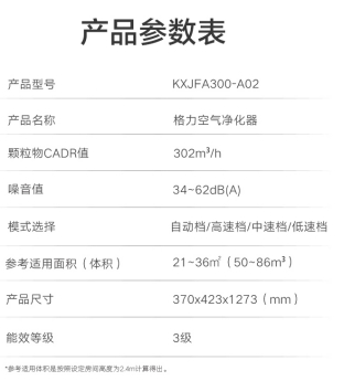 有专家建议称,购买空气净化器时应注意CARD值(提供洁净空气的能力)大小,该数值越高既单位时间内机器能够提供越多的洁净空气,以“猎手”系列空气净化器KXJFA300-A02为例,适用面积为21-36㎡(50-86m³),它的CARD值能够达到302m³/h。