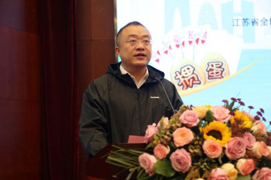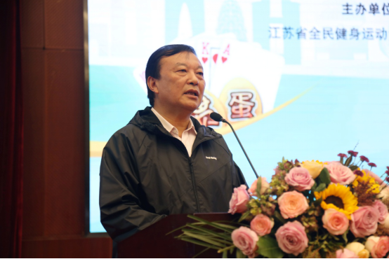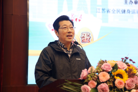 江苏省掼蛋运动协会会长漆冠山在“国缘V9”江苏省第八届全民健身运动会掼蛋项目比赛开幕式上致辞