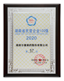 2020年11月5日,尔康制药获得由湖南省企业和工业经济联合会颁发的“2020湖南制造业企业百强”,以及由湖南省工商业联合会颁发的“2020湖南民营企业百强”两项殊荣。