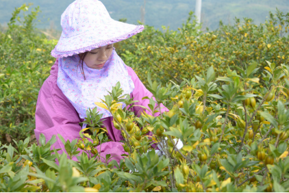 秋雨过后,走进福建省福鼎市贯岭镇茗洋村,盘桓山路间,映入眼帘的是满山飘香的栀子树。一首用福鼎方言演绎的歌曲,传唱着“若栀子比众木,人间诚未多难睹”,杜甫笔下既能提取黄色染料,又可理气治病的黄栀子,此时如小灯笼般缀满枝头,散发着特有的香味。