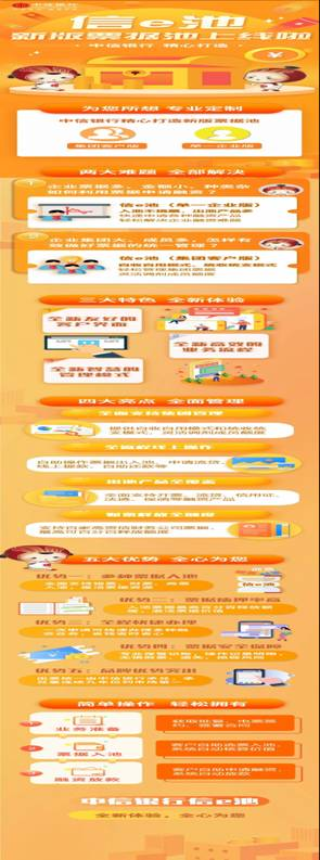“信e池”是中信银行为企业客户精心打造的新版票据池,客户可将持有的票据质押入池,池中的票据价值将转换成融资额度价值,支持办理多种融资产品,如新开票、流贷、信用证、法透、保函等,后续还将升级为资产池,进一步扩大入池资产范围。企业通过使用“信e池”,可以快速激活票据价值,提升企业财资管理效率,轻松解决票据管理、融资难题。