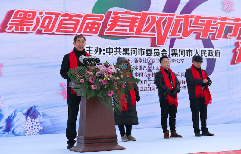 12月10日,北国边境城市黑河千里冰封,银装素裹。由黑河市委市政府主办,新华社民族品牌工程办公室、中国汽车工业协会、中国汽车技术研究中心有限公司、中国汽车工程研究院股份有限公司协办的黑河首届寒区试车节在黑河市卧牛湖试车场拉开帷幕。黑龙江省委常委、宣传部部长贾玉梅宣布试车节开幕,新华社民族品牌工程办公室常务副主任宗焕平宣布黑河寒区试车产业加入新华社民族品牌工程,并向黑河市委副书记丛丽颁授入选新华社民族品牌工程金钥匙。