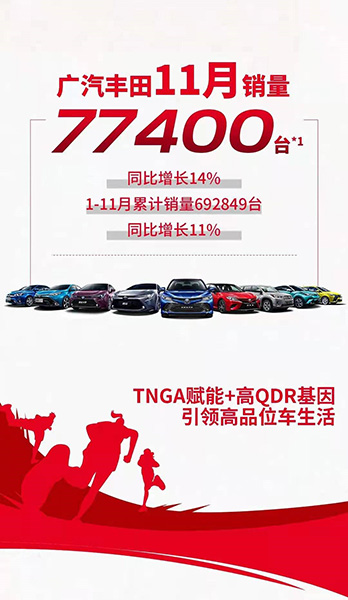 2016年,2017年,面对广汽丰田稍逊于整体市场的6.9%和0.7%的增长率,不少人有过质疑。殊不知,在历经这两年的蓄势之后,广汽丰田即将踏上持续快速增长的通道。2018年,广汽丰田的销量为58.03万辆,同比增长32%,而这一年,市场整体增长为2.8%;2019年,在大势下滑8.2%时,广汽丰田以68万的销量,实现了18%的增长。在充满波折和挑战的2020年,1-11月份,广汽丰田实现销量69.28万辆,同比增长11%,连续三年两位数的增长已经几无悬念。