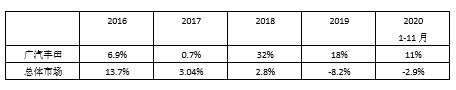 数据来源:中国汽车工业协会和广汽丰田公开的数据发布