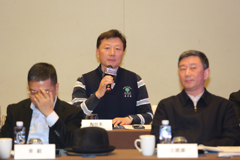 上海市普陀区长寿路街道商会会长、上海市江苏商会副会长陶世圣在座谈会上发言