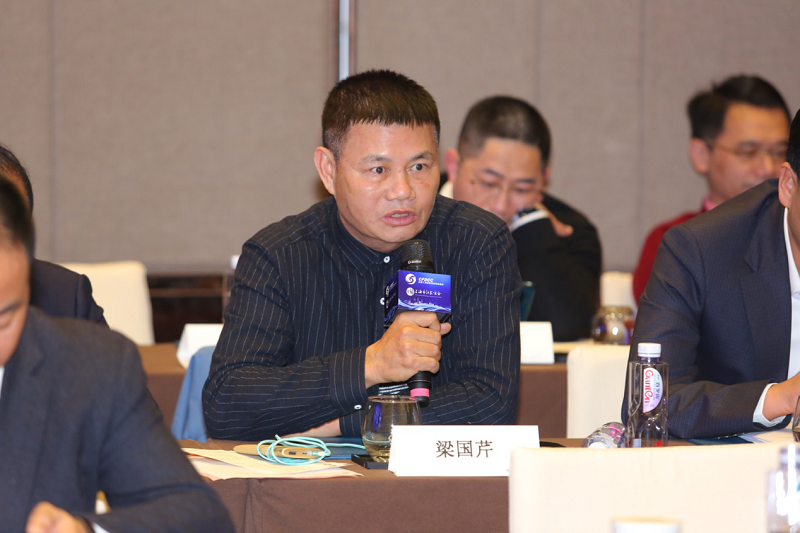 全国工商联家具装饰业商会智能家居专委会会长、广州市河东智能科技有限公司董事长梁国芹在座谈会上发言