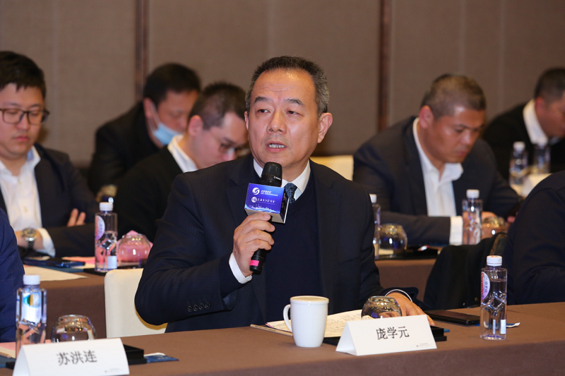 全国工商联家具装饰业商会党建工委委员、定制家居专委会执行会长,郑州大信家居有限公司董事长庞学元在座谈会上发言