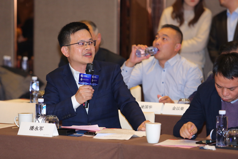 全国工商联家具装饰业商会青年企业家委员会主席团主席,江苏希尔登家居有限公司董事长潘永军在座谈会上发言