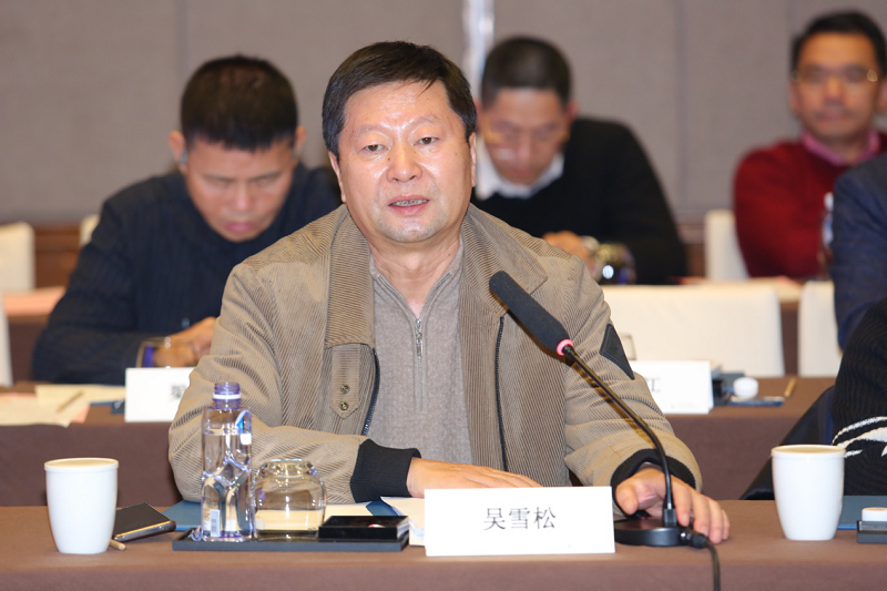 全国工商联家具装饰业商会监事长、党建工委副主任,华鹤集团有限公司董事长吴雪松在座谈会上发言