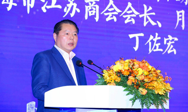 全国政协委员、全国工商联家具装饰业商会会长、上海市江苏商会会长、月星集团董事局主席丁佐宏致欢迎辞