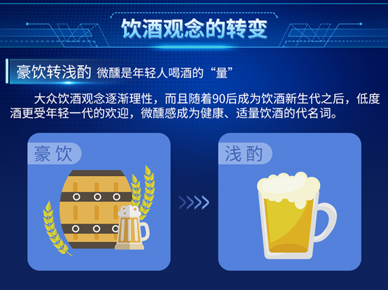 大众饮酒观念逐渐理性,而且随着90后成为饮酒新生代之后,低度酒更受年轻一代的欢迎,微醺感成为健康、适量饮酒的代名词。