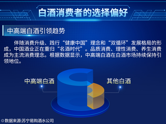 伴随消费升级、践行“健康中国”理念和“双循环”发展格局形成,中国酒业正在重归“名酒时代”。品质消费,理性消费,养生消费成为主流消费理念。根据数据显示,中高端白酒在白酒市场持续保持引领地位。