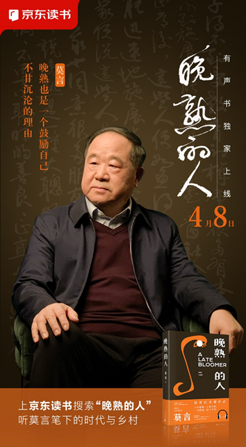 4月8日,莫言名作《晚熟的人》有声剧独家上线京东读书。京东图书邀请国家级配音演员、演播家王明军和小曾,从声音的角度,高度还原莫言笔下的故乡,深情演绎故乡中种种晚熟的人与事。值得一提的是,制作方中广影音曾制作《生死疲劳》等多部莫言作品的有声剧。