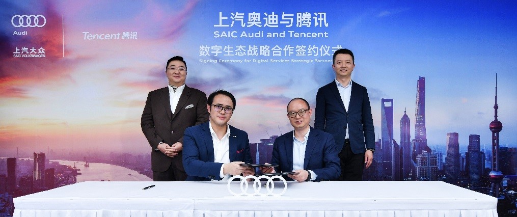图为上汽奥迪与腾讯公司签署谅解备忘录