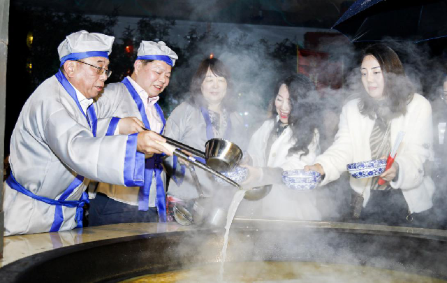 丁佐宏理事长和各位会长为参会人员盛鱼汤