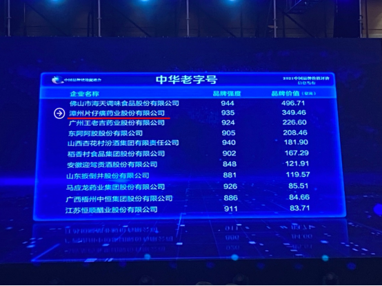 5月9日,正值第五个中国品牌日到来之际,新华社、中国品牌建设促进会、中国资产评估协会、国务院国资委新闻中心等单位在上海国际会议中心举行“2021中国品牌价值评价信息发布暨中国品牌建设高峰论坛”。片仔癀以品牌价值349.46亿元、品牌强度935在中华老字号品牌中位列第二,品牌价值再创新高。