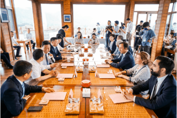启动仪式后,中外嘉宾围绕“高质量发展背景下的茶旅融合新机遇”主题举行了圆桌会谈。浉河区相关负责人就浉河区区情、茶叶种植、文旅资源等情况进行了介绍,与会嘉宾围绕中外茶文化交融互鉴、茶旅融合高质量发展等开展对话交流。