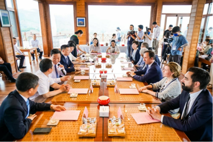 6月9日上午,中外嘉宾围绕“高质量发展背景下的茶旅融合新机遇”主题举行圆桌会谈。(付锐 摄)