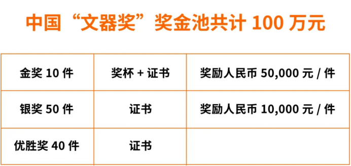 2021年4月30日,2021年首届中国“文器奖”文创设计大赛的评选结果新鲜出炉,在来自中国、日本、韩国、泰国、英国、意大利、马来西亚、德国、中国台湾、中国香港等10个国家与地区的8898件参赛作品中100件产品脱颖而出,分别获得金、银、优胜奖,共享百万奖金。