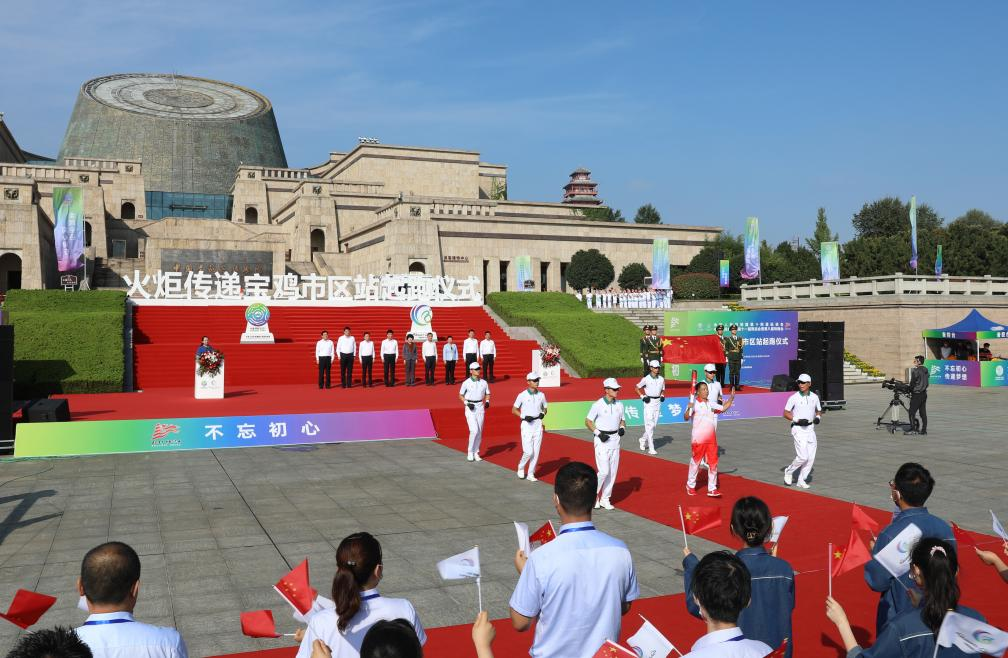 9月4日上午,第十四届全国运动会和全国第十一届残疾人运动会暨第八届特殊奥林匹克运动会火炬传递活动第十站在陕西省宝鸡市举行。