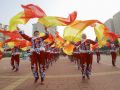 1月19日,山东省临沂市兰山区前岗头社区文艺演出队在排练秧歌舞,迎接春节到来。