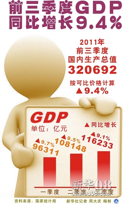 新华社图表,北京,2011年10月18日图表:前三季度GDP同比增长9.4%新华社记者 周大庆 编制