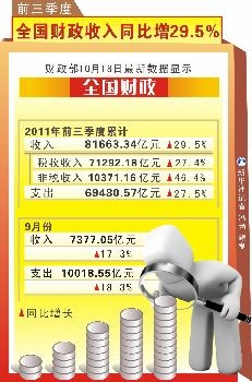 新华社图表,北京,2011年10月18日图表:前三季度全国财政收入同比增29.5%新华社记者 冯琦 编制
