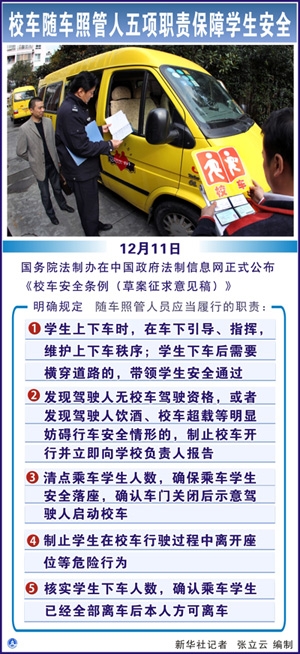 新华社图表,北京,2011年12月11日图表:校车随车照管人五项职责保障学生安全新华社记者 张立云 编制