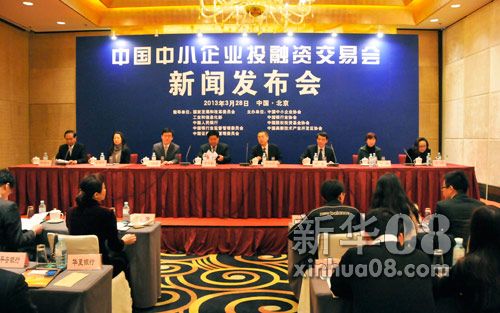 3月28日,2013中国中小企业投融资交易会新闻发布会在京举行,图为新闻发布会现场。 新华08网钟奕摄