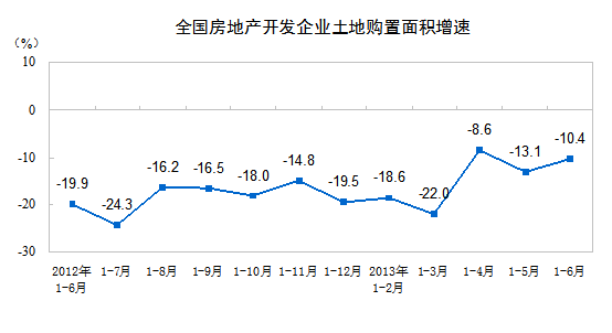 1-6月份,房地产开发企业土地购置面积15721万平方米,同比下降10.4%,降幅比1-5月份收窄2.7个百分点;土地成交价款3699亿元,增长7.5%,增速提高3.8个百分点。