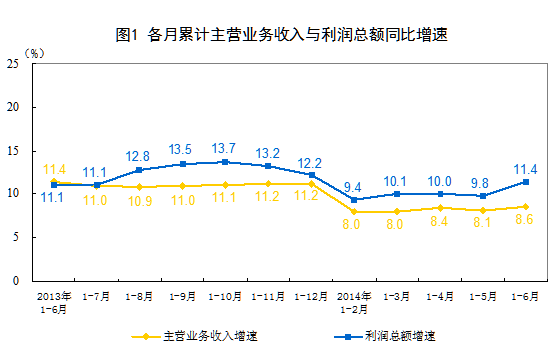 1-6月份,全国规模以上工业企业实现利润总额28649.8亿元,同比增长11.4%,增速比1-5月份提高1.6个百分点;实现主营活动利润26722亿元,同比增长10.8%,增速比1-5月份提高1.7个百分点。