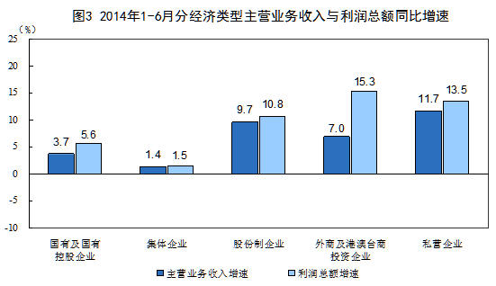 1-6月份,在规模以上工业企业中,国有及国有控股企业实现利润总额7613.5亿元,同比增长5.6%;集体企业实现利润总额349亿元,增长1.5%;股份制企业实现利润总额16930.3亿元,增长10.8%;外商及港澳台商投资企业实现利润总额6917.6亿元,增长15.3%;私营企业实现利润总额9104.9亿元,增长13.5%。