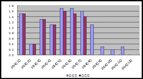 非食品价格方面,近10年(2004-2013年)8月份月均环比增长0.1个百分点;近3年(2011-2013年)8月份月均环比增长0.13个百分点。以环比增长0.1%计算,非食品价格推动8月CPI环比上涨0.1个百分点。