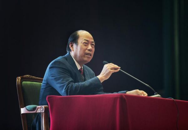 图为碧桂园集团董事局主席杨国强在该集团2019年度会议上讲话