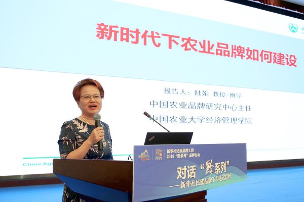 22日,中国农业品牌研究中心主任、中国农业大学经济管理学院教授陆娟在2019“黔系列”品牌培训班上解析新时代下如何建设农业品牌。(来源:中国图片集团)